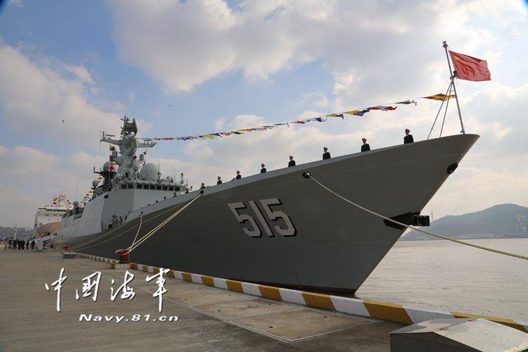 滨州舰舷号515,舰长140米,宽16米,满载排水量4000余吨,配备多套我国自主研发具有世界先进水平的武器系统,可单独或者协同海军其他兵力攻击敌水面舰艇、潜艇,具有较强的警戒探测和综合作战能力。该型舰是我国海军新一代主力作战舰型,列装海军以来先后完成过索马里护航、利比亚撤侨、联合军演、环球访问等一系列重大军事和外交任务,赢得广泛赞誉。