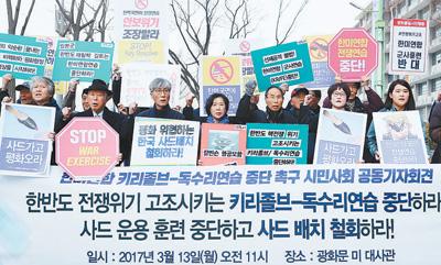 2017年3月13日,韩国民众在首尔示威抗议韩美“关键决断”以及“鹞鹰”军演。