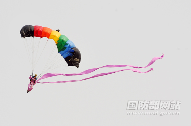 谁持彩链当空舞 跳伞健儿赛天仙