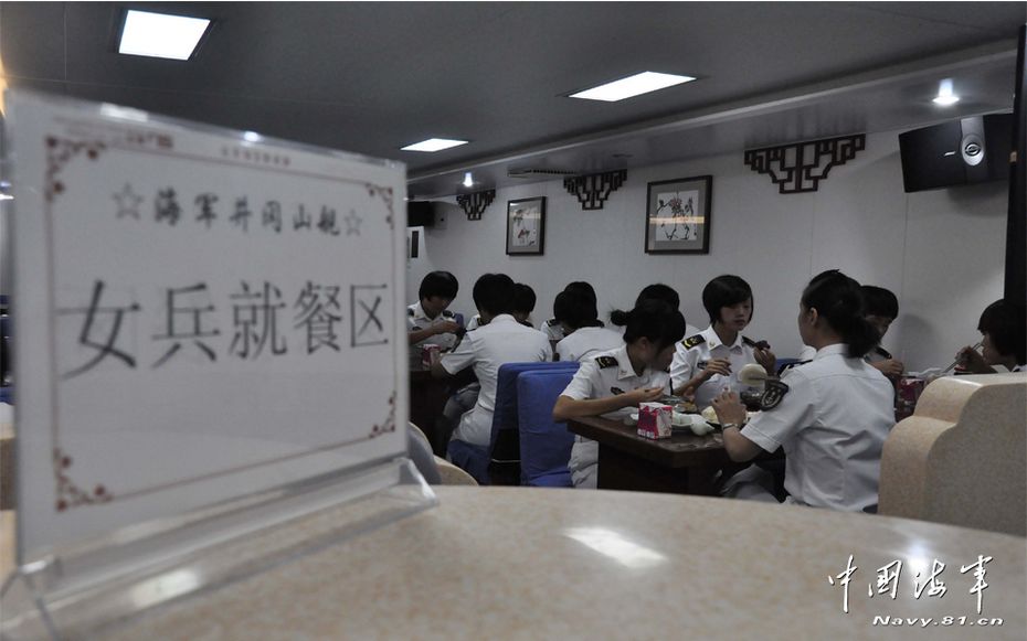井冈山舰为女舰员设置了专门的就餐区