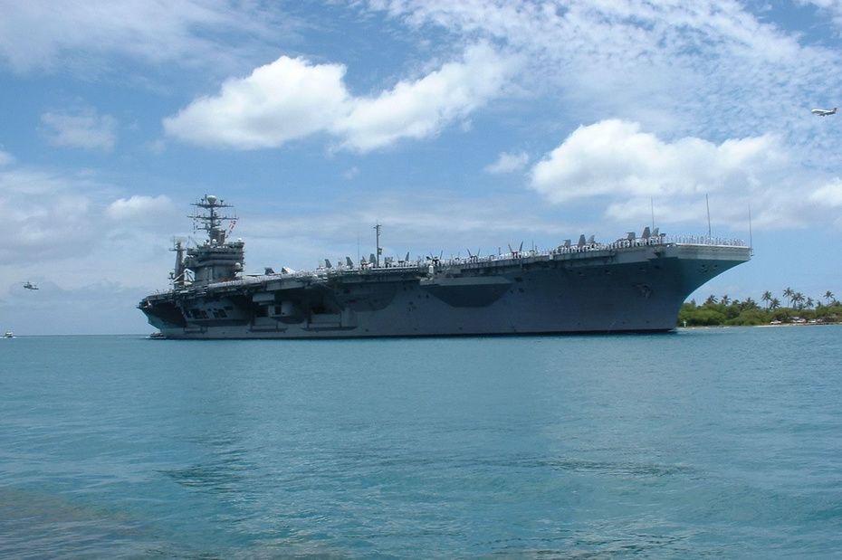“尼米兹”号航空母舰是美国海军一系列“尼米兹级”核动力航空母舰的第一艘。“尼米兹”号于1972年5月13日正式下水,其舰名承袭自第二次世界大战期间曾任美国海军太平洋舰队指挥官的契斯特•尼米兹海军五星上将,该舰目前仍是美国海军重要的打击武力平台,也是迄今为止全世界最大型的军舰之一。