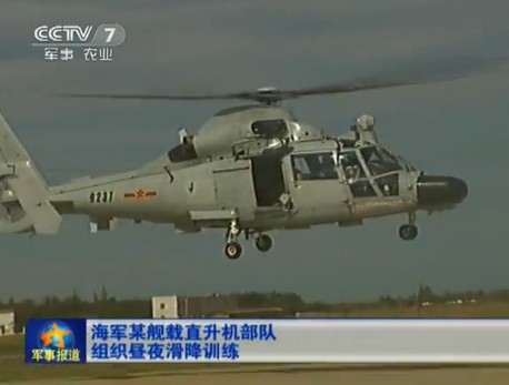 实拍南海舰队舰载直升机昼夜间滑降演练(来源:央视网)