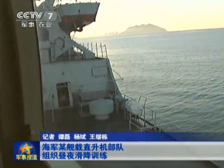 实拍南海舰队舰载直升机昼夜间滑降演练
