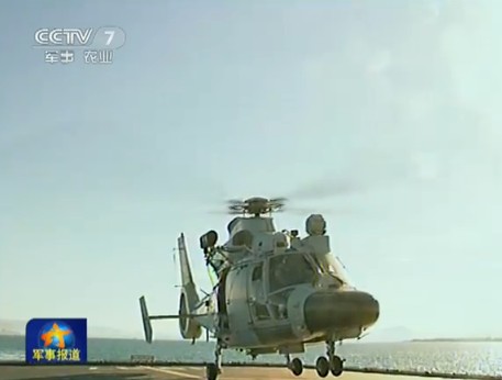 实拍南海舰队舰载直升机昼夜间滑降演练