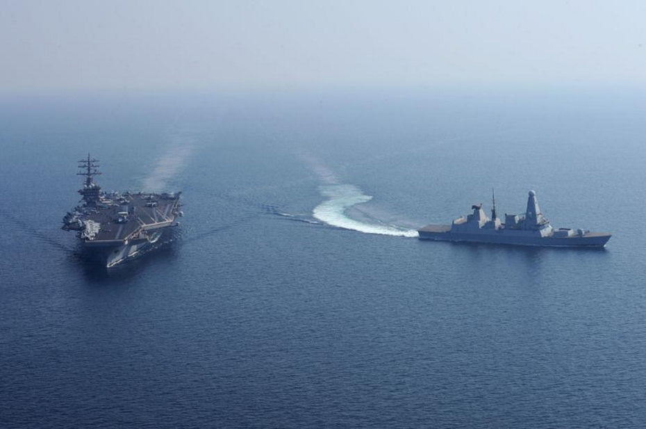美军航母与英军最新型隐身舰结伴执勤
