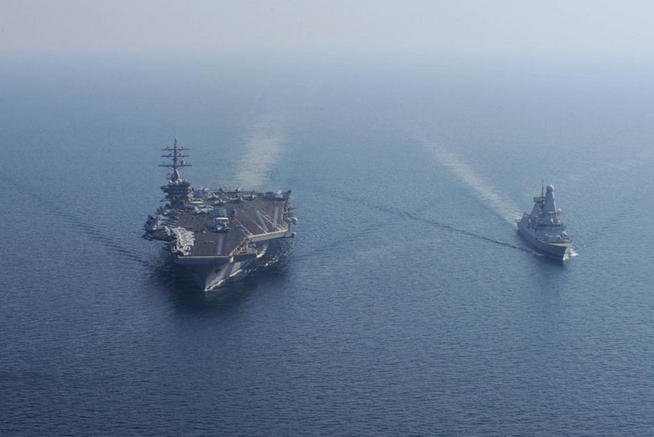 美军航母与英军最新型隐身舰结伴执勤