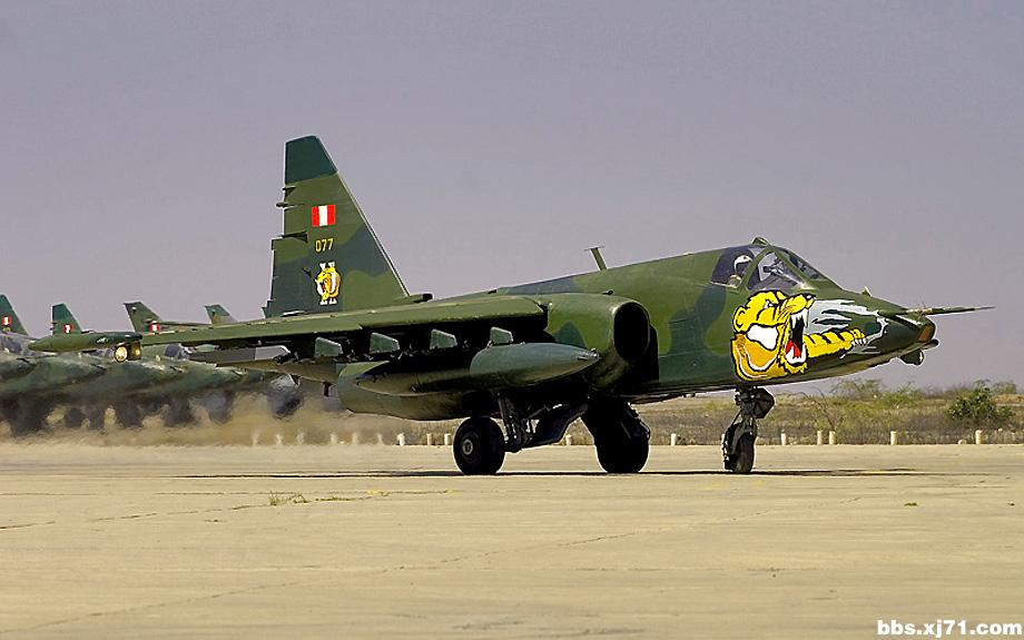 武器前机身左侧有一门30毫米双管机炮,机翼下总共有8个挂架,可携带4400千克空-地武器,包括57毫米和80毫米火箭,500千克燃烧弹、化学集束炸弹、空-地导弹,“旋风”反坦克导弹,两个外翼挂架可带“环礁”或“蚜虫”空-空导弹,尾锥内有用于电子干扰的金属箔条投放器。