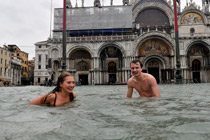 威尼斯洪水民众水中游