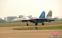 记者发现,这次表演的5架苏27中有4架是表演涂装,另一架则是俄罗斯空军涂装,安德烈称,因为这次选用的是改进型的苏27,所以没来得急对其更换表演涂装。(完)