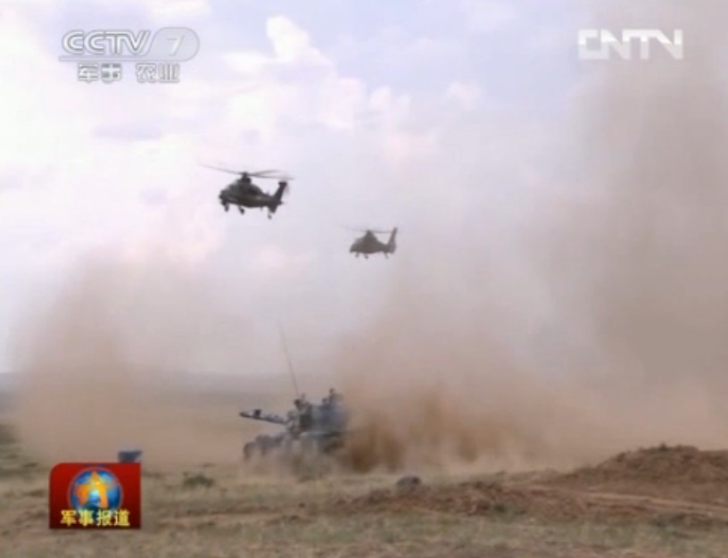 实拍直10直19武装直升机高难课目训练(来源:央视网)