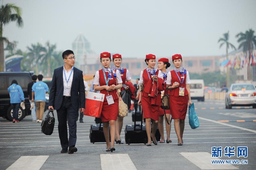 11月13日,当日航展结束后,河北航空公司的空乘人员离开展馆。当日,第九届中国国际航空航天博览会在珠海开幕,除了丰富多样的飞机展示,各种职业女性也成了一道独特的风景线。 新华社记者杨光摄 图片来源:新华网