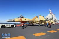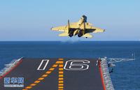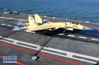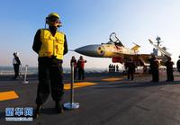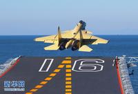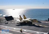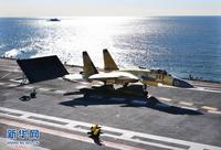 歼—15飞机顺利在“辽宁舰”上着舰。新华军事记者 查春明摄