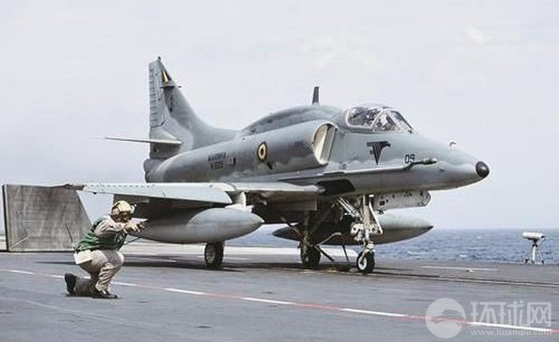 巴西航母上的起飞指挥官引导舰载机起飞时的动作