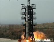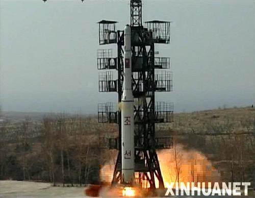 这张朝鲜中央通讯社2012年4月8日提供的照片显示朝鲜4月5日发射“光明星2号”试验通信卫星的情景。新华社/朝中社