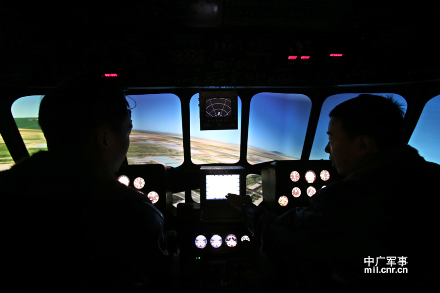 盛建忠经常帮带成份新的飞行员,在模拟飞行训练器飞行训练时耐心帮助他们解决飞行中存在的问题。郭维虎 摄