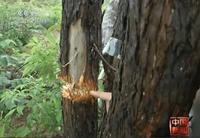 记者:我们可以看到直接贯穿这么厚的钢板,直接打穿掉,而且穿过以后对着后面的树你看,这后面的树脂,树也是打了一半断掉了。