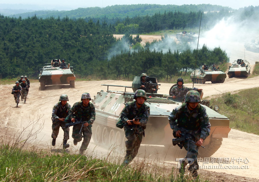 装甲步兵下车展开冲击。本网记者 张雷摄