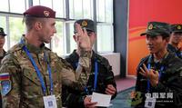 11日上午10时,双方参训特战队员熟悉训练场地和装备,并进行战术手语协同训练。