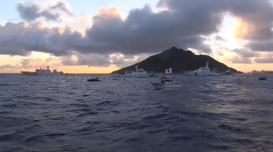 中国4艘海监船在钓鱼岛近岸阻止日右翼船侵入