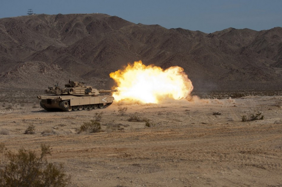 美军M1A1坦克主炮开火