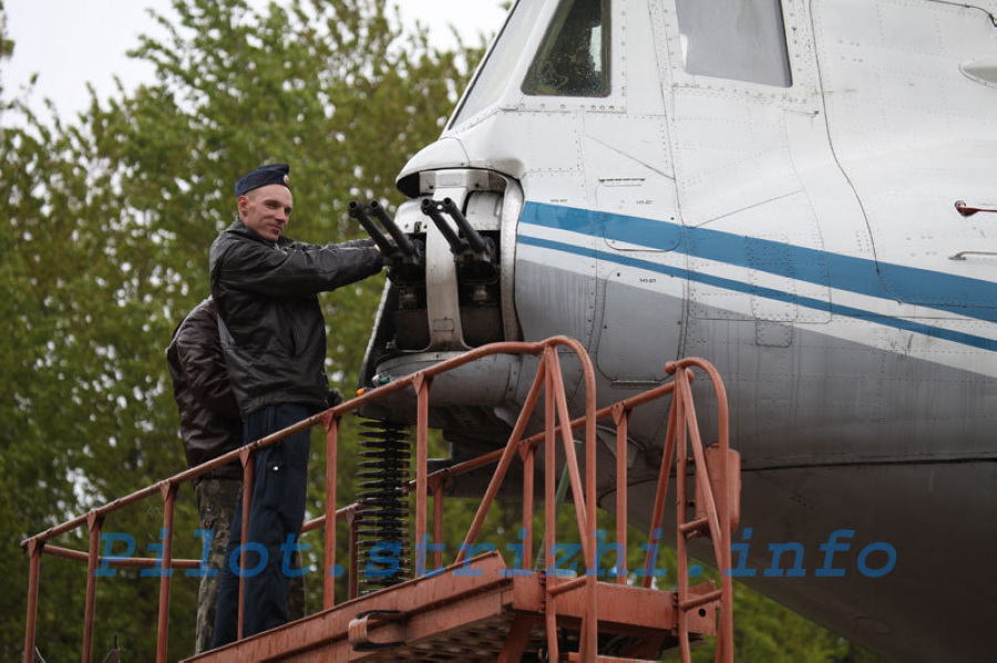 地勤人员为伊尔-76M运输机机尾炮填装弹药