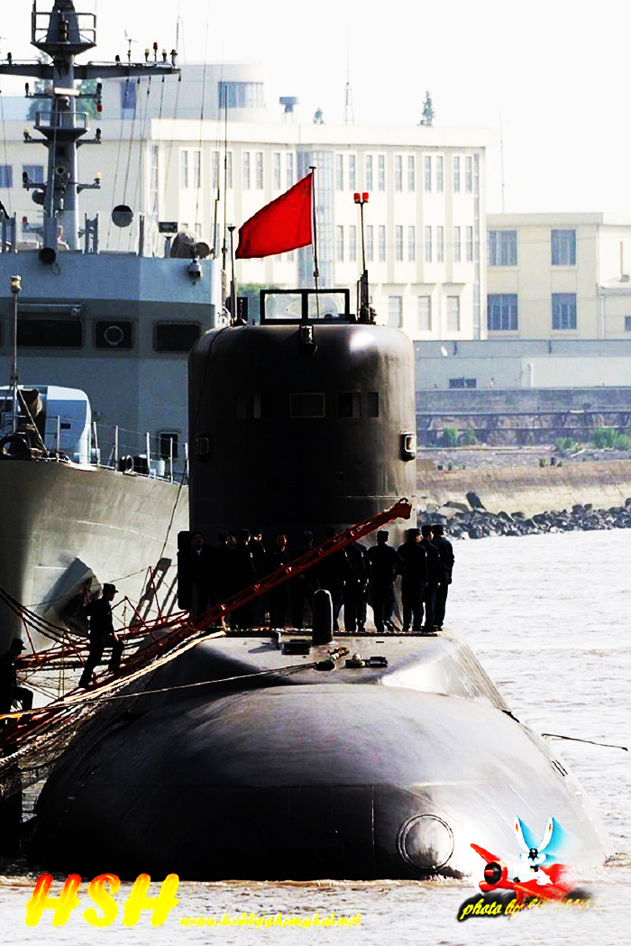 中国海军032型潜艇拥有与普通潜艇不同的巨大围壳。图片为我军新型试验潜艇。