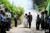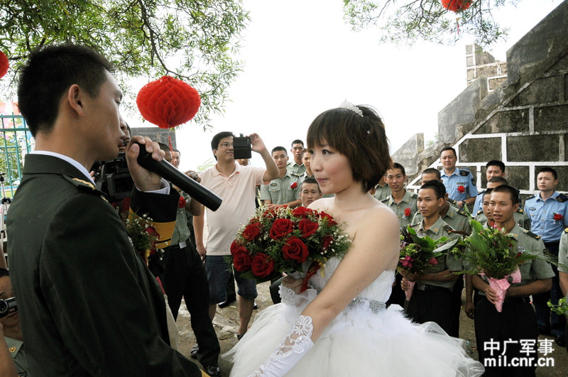 7月20日上午10时,广西某边防部队连长胥峰在金鸡山哨所相思树下举行了婚礼,结束了十年的爱情长跑。