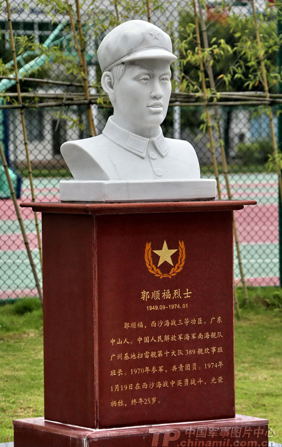郭福顺,西沙海战三等功臣。广东中山人。中国人民解放军海军南海舰队广州基地扫雷舰第十大队389舰炊事班班长。1970年参军,共青团员。1974年1月19日在西沙海战中英勇战斗,光荣牺牲,终年25岁。