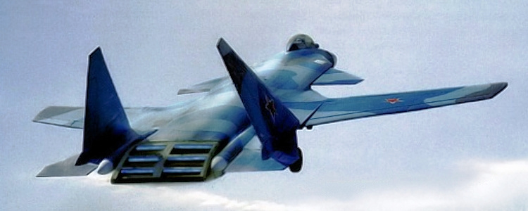 苏-47战斗机有明显的机翼翼根边条和长长的机身边条,能降低阻力和减少雷达反射信号,改善飞机的起飞着陆性能,在亚音速和大迎角时有很好的气动性能,可增加飞机的航程和高空机动性,并能充分利用复合材料的结构特性。扇形不可调进气口道位于机身边条下方,S形涵道侧面靠近机翼前缘处装有鸭翼。双垂尾略向外倾斜,机身中部有两个大的辅助进气门,并且采用雷达吸波涂料对飞机进行了隐身处理。