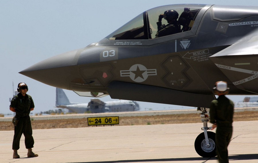 7月30日,美国海军陆战队第121战斗机中队于亚利桑那州尤马海军陆战队基地接收了一架F35B战斗机,这是F35B战机首次装备海军陆战队。(来源:环球网)
