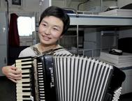 2009年10月3日晚,在中国海军第三批护航编队“舟山”舰举行的“为了祖国月更明”中秋文艺晚会上,随舰护士向骄荣在表演“明月千里寄相思”。建军86周年来临之际,我们一起走近摄影师镜头中的女兵,感受她们“战场”之外的柔软一面。新华社发