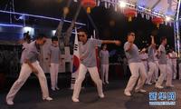 来自海军大连舰艇学院的学员为韩国海军军官学校学员及当地华人华侨等献上精彩演出。这是学员演出舞蹈《江南style》。