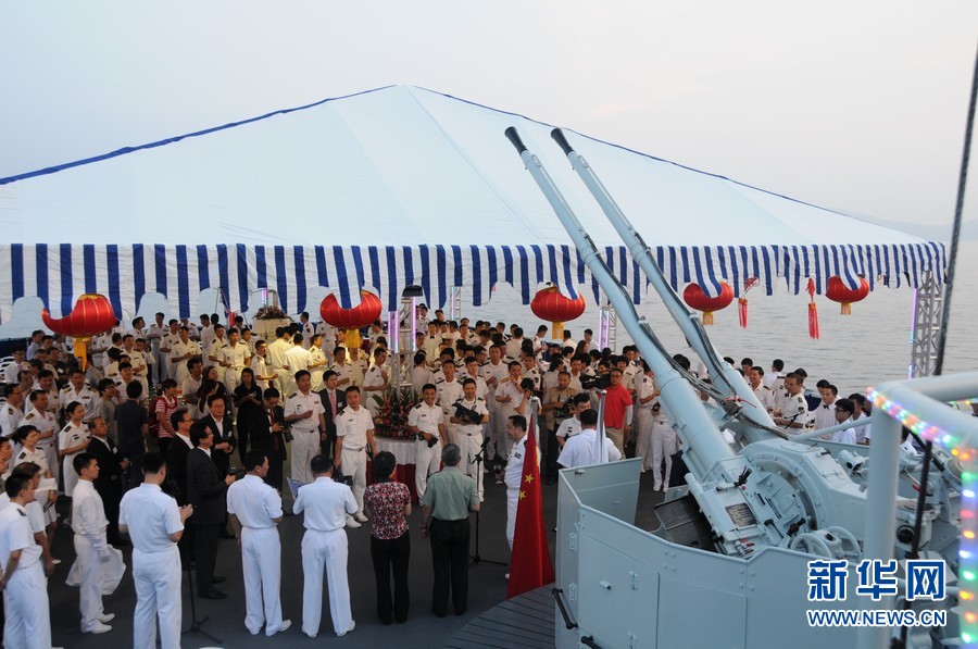郑和舰访韩举行甲板招待会 舰员大秀骑马舞