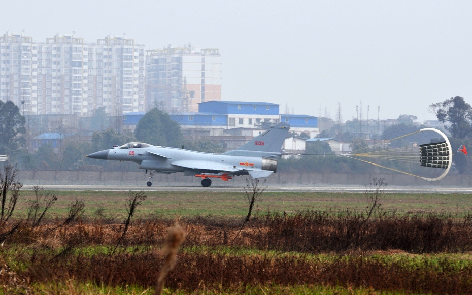 歼-10B降落放减速伞