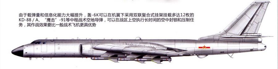 挂载6枚KD-88A空地导弹的轰-6K轰炸机