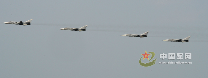 中俄联演闭幕式阅兵 歼轰-7编队低空通场