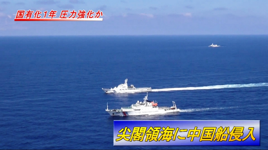 日本公开中国海警船大编队巡航钓鱼岛画面