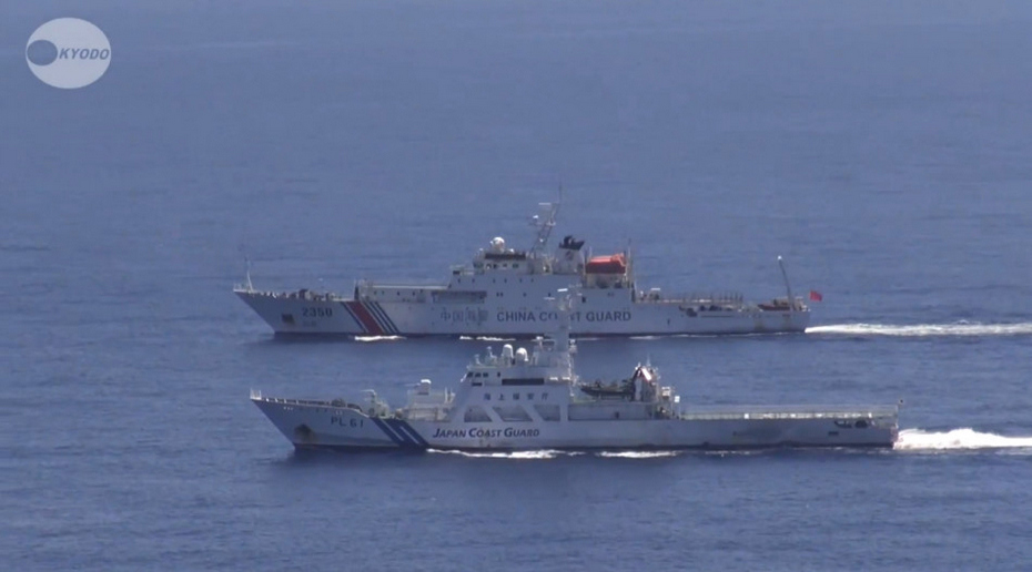 日本巡视船监视中国海警船