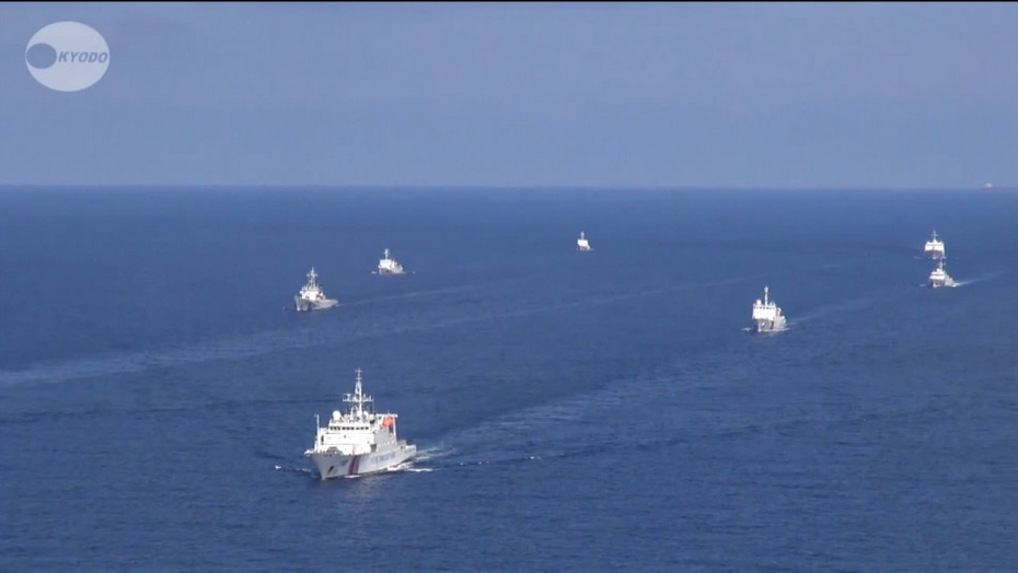 日本公开中国海警船大编队巡航钓鱼岛画面