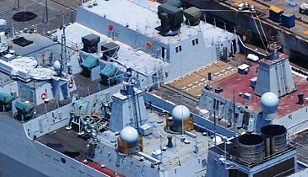 同时取消8部倾斜式反舰导弹发射装置,改为防空反潜反舰通用垂直发射装置。