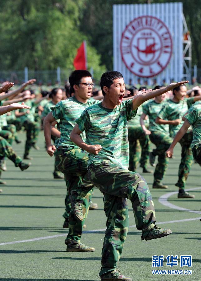 9月12日,吉林大学2013级新生进行军体拳展示。当日,在吉林大学2013年开学典礼上,刚刚结束军训的大一新生向全校师生进行军训成果展示。 新华社记者 张楠摄