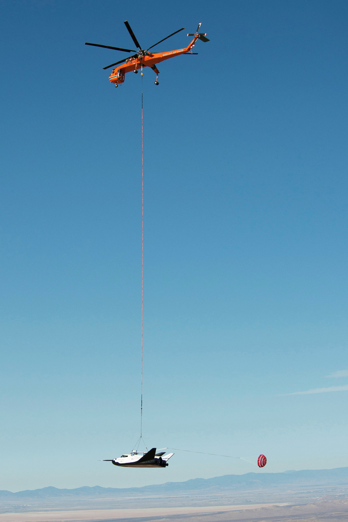 外国军事论坛称,中国成为继美国之后第二个验证该项技术的国家,对其国防建设和国家空间防御体系具有重大意义。(图片为美国追梦者飞船进行直升机悬吊自由飞试验)