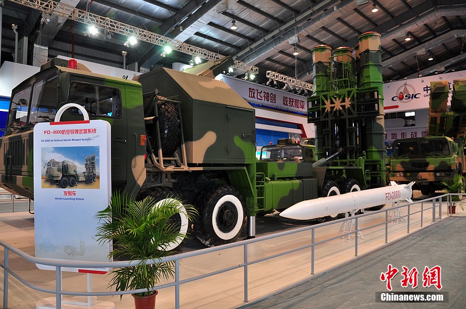 2012年珠海航展上亮相的中国外贸版红旗9防空导弹(外贸型号:FD-2000)。陈海峰 摄