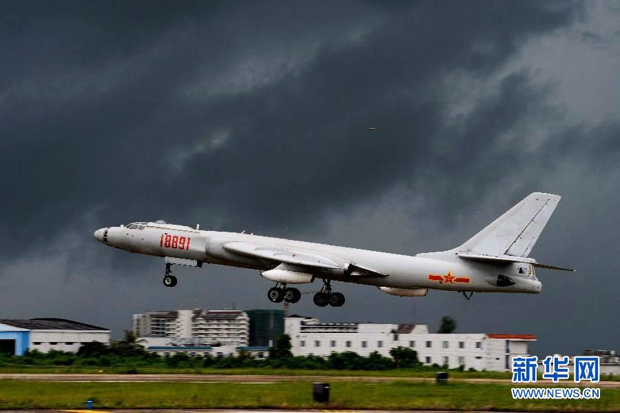 “使命行动-2013C”演习中,雨后晨曦,轰炸机在复杂气象条件下起飞执行任务。K时,“红”方指挥部根据多维立体侦察情报,下达远程突击作战命令。几乎在同一时间,空中、海上、地面电子战作战平台,不间断地对“蓝”方实施电子干扰、压制……“红”方参演预警机、加受油机和数十架歼击机、轰炸机,从相距数百公里的多个军、民用机场迭次起飞,千里奔袭“蓝”方目标阵地。新华社发(沈玲 摄)