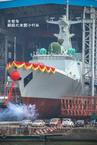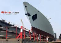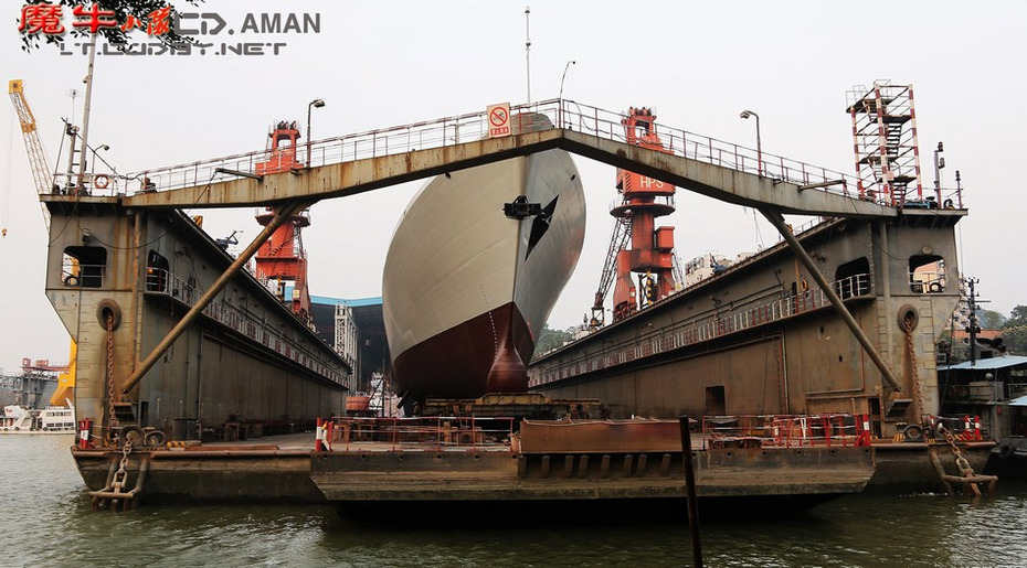 10月7日,最新建造的一艘054A型护卫舰被运送到浮动船台上,即将下水。