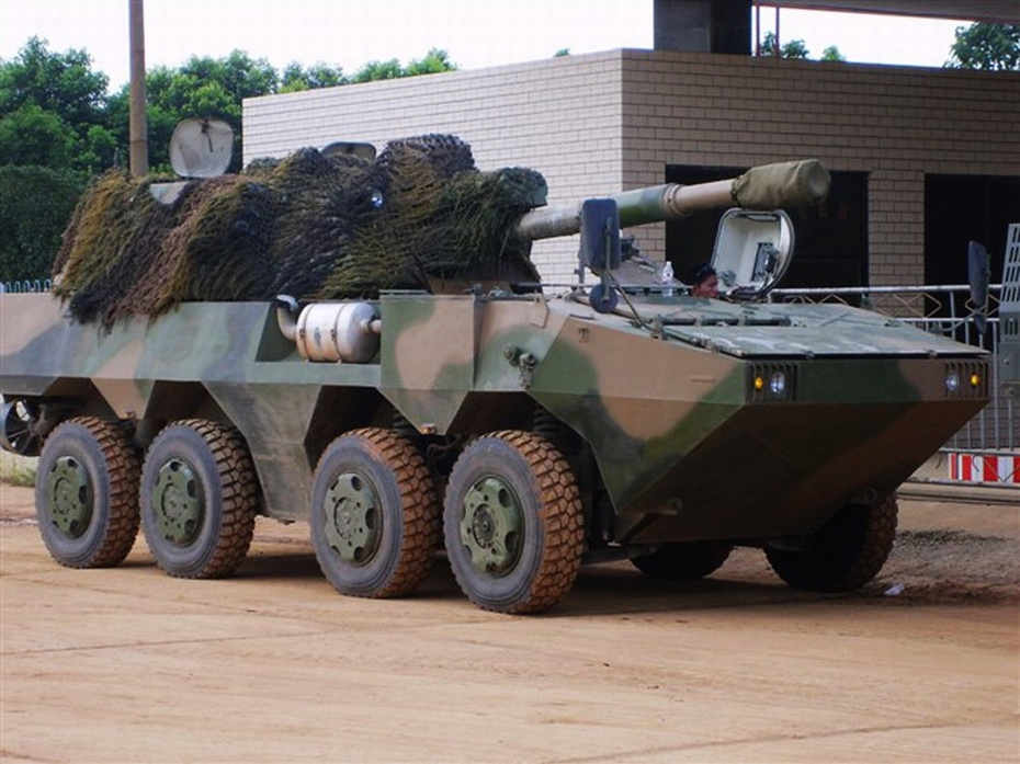 中国09式122mm轮式突击炮,该突击炮以09式步兵战车底盘为基础改装而成,09式步兵战车有许多改型,包括指挥车、电子干扰车、轮式突击炮等等。