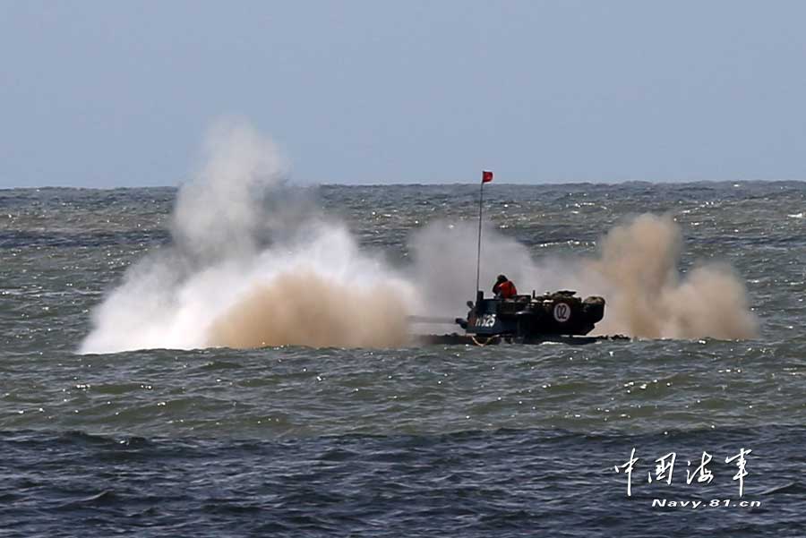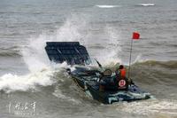 当天,两栖装甲突击车、两栖装甲步兵战车先后20批60余辆次踏浪蹈海泛水编波,进行浮渡射击训练,消耗炮弹500余发,命中率达95%,25名射手实弹射击成绩优异,被评为优秀射手。