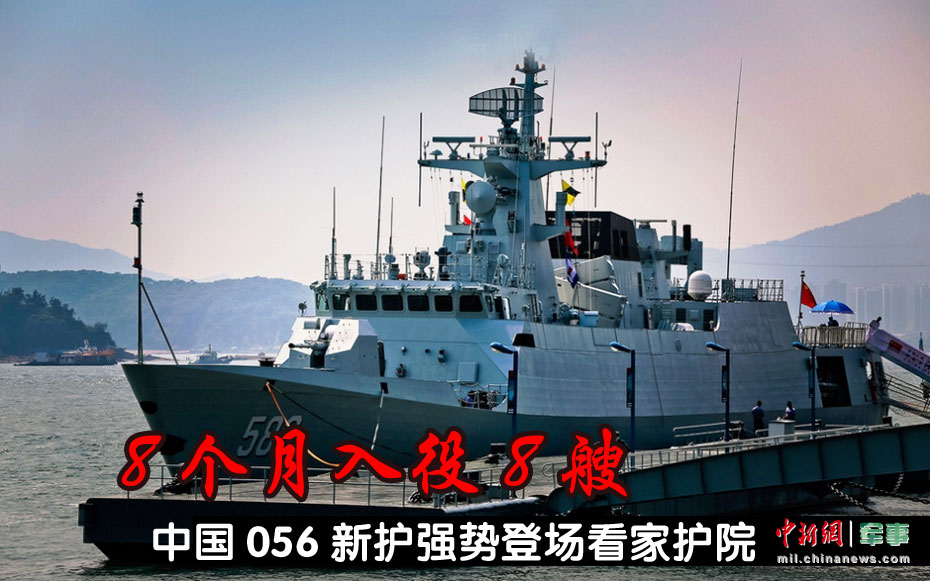 10月12日,中国海军新一代056型导弹护卫舰“百色舰”在海南三亚军港举行命名授旗仪式,正式加入海军战斗序列。自2013年2月25日“蚌埠舰”服役以来,中国海军已先后接收8艘056型护卫舰,平均每月服役一艘。