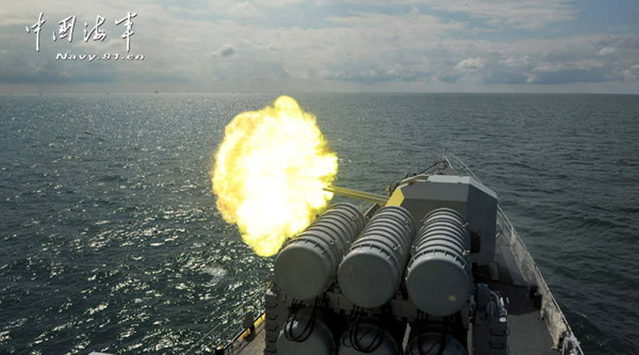东海舰队18艘战舰实练 淮北舰一炮命中靶船
