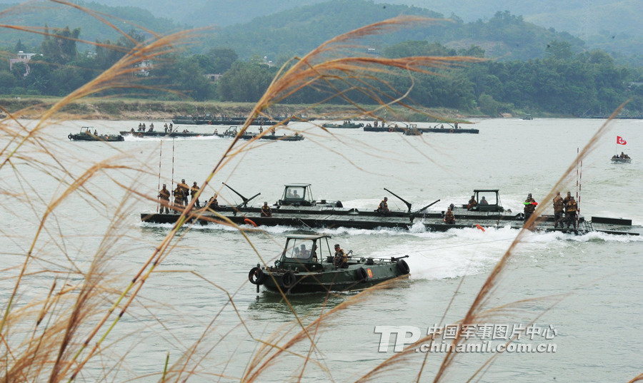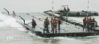 参演部队架设浮桥。解放军报记者 李 靖摄